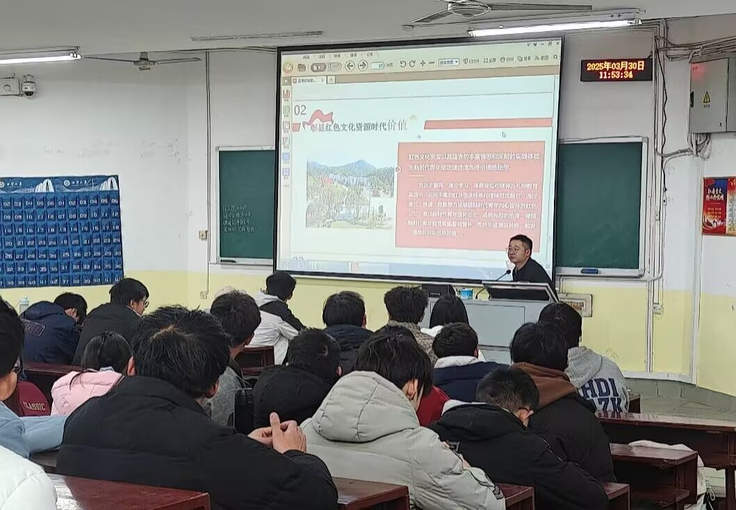 团委书记文林波老师主讲。讲座旨在通过深入挖掘湖南丰富的红色文化资源,探讨其在新时代青年思想教育中的重要作用。