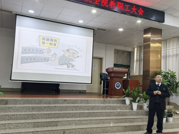 刘稳丰结合典型案例与政策要求,深入剖析开展师德师风建设的重要性与实践路径。他指出,师德师风是教师的立身之本,具有涵盖面广、渗透性强的特点,其要求超越一般职业道德,教师需以“学为人师、行为世范”为准则,在教育教学、学术研究、社会交往中严格自律。并结合教育部通报案例与高校实际,重点阐述分析了言论出格、违规收受钱物、学术不端、师生关系失当等四类违反师德师风的表现。他强调,师德失范后果严重,不仅影响个人事业发展与家庭幸福,还将损害学院声誉,甚至导致行政与党组织负责人被追责。最后希望香港六合彩最准官方网